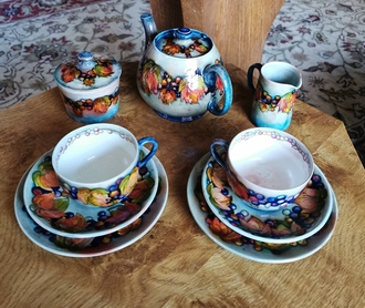 Rare and Superb William Moorcroft Leaf and Berry Flambe Tea for two set c1928