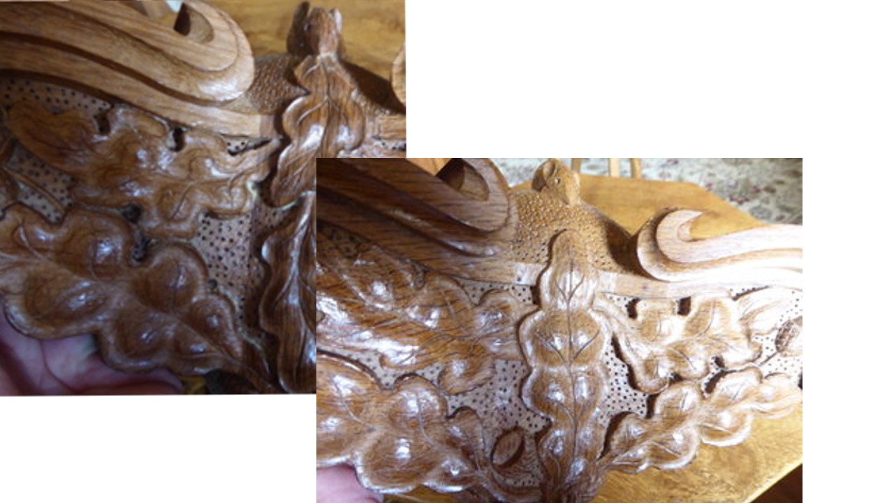 Lovely Robert Thompson Mouseman Owl carving c1980s. Very good condition with no losses or splitting of wood. Lovely detailing and highlighted feather detailing. Medium fume to the Oak. The Owl stands 32cm tall. Good signature mouse and tail showing the usual mouseman cuteness. Please ask if additional images are required. SOLD